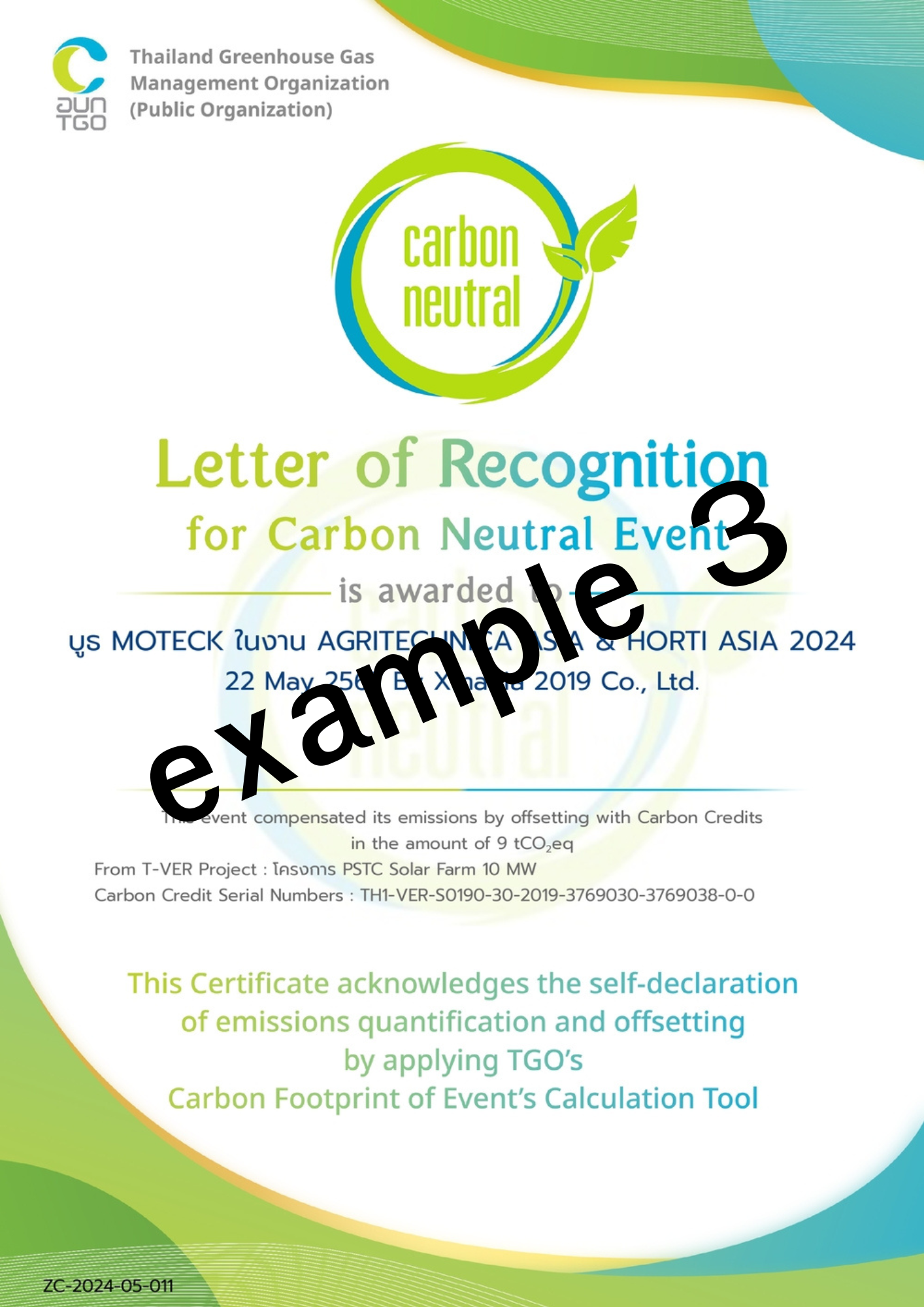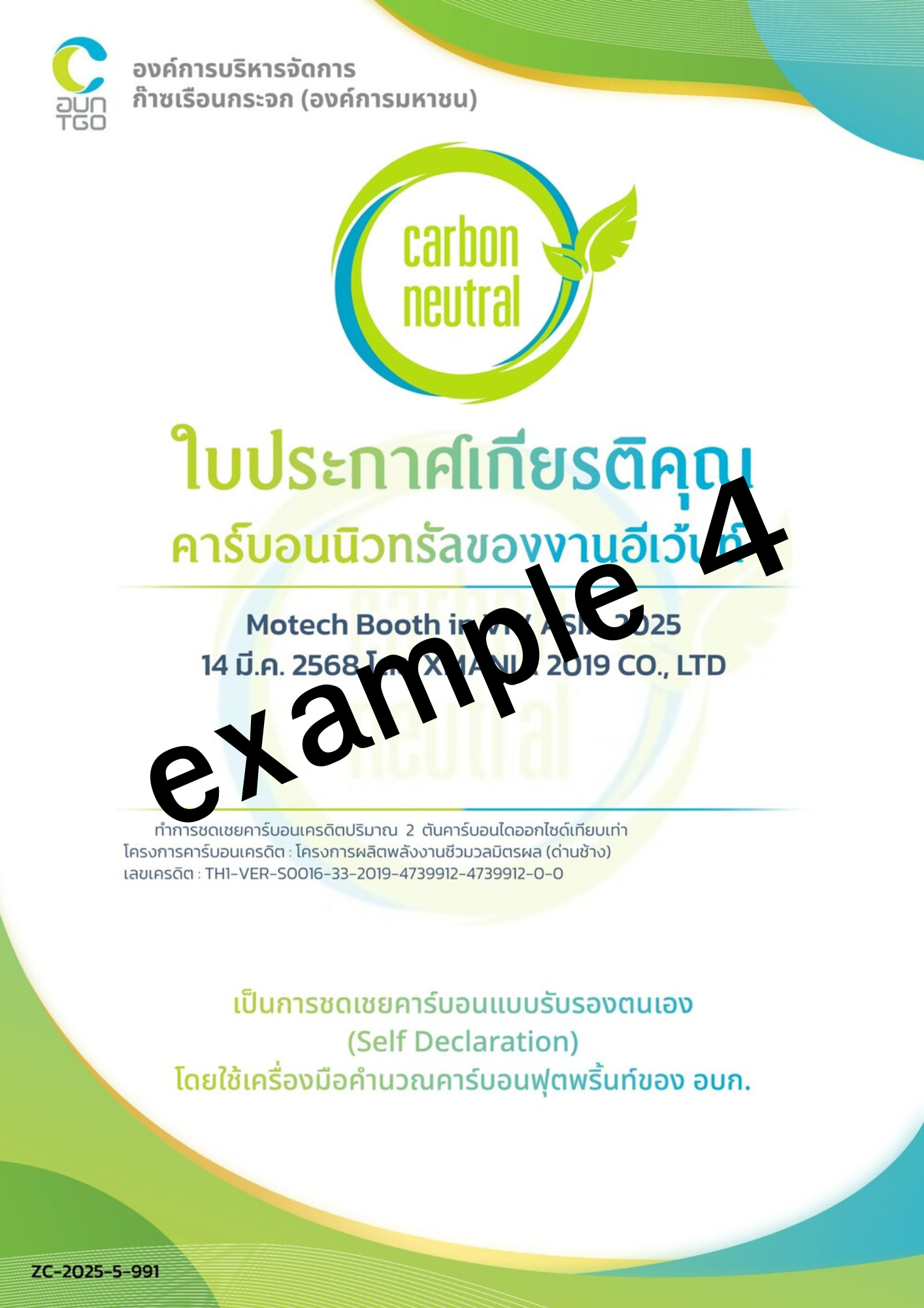 นอกจากนี้ Booth & Beyond สามารถให้การสนับสนุนและช่วยประสานงานในกระบวนการด้านการชดเชยคาร์บอน (Carbon Offset) สำหรับโครงการจัดแสดงสินค้าได้ตามความประสงค์ของลูกค้า ทั้งนี้ การดำเนินการดังกล่าวจะเป็นไปตามเงื่อนไขของโครงการที่เกี่ยวข้อง และผลลัพธ์ขึ้นอยู่กับกระบวนการและหน่วยงานที่รับผิดชอบ ในกรณีที่กระบวนการดำเนินการแล้วเสร็จและเป็นไปตามข้อกำหนด ลูกค้าอาจสามารถแสดงสัญลักษณ์หรือโลโก้ “Carbon Neutral Event” หรือสัญลักษณ์ด้านความยั่งยืนอื่น ๆ ที่เกี่ยวข้องภายในบูธ ตามเงื่อนไขของโครงการนั้น ๆ